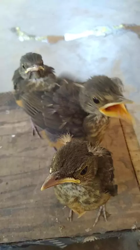 #aves #Alimentando filhote de sabia larangeira