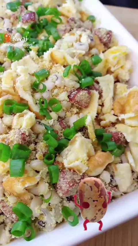 JÁ FEZ COM OVO? . INGREDIENTES: - 5 xícaras de feijão fradinho cozido, 1 cebola, 4 dentes de alho, cheiro verde e sal a gosto, 100g de bacon 3 calabresas, 1 xícara de farinha de trigo, 2 ovos, 4 c/s de manteiga. . #farofa #Receita #viral #kwaicriador #feijaotropeiro
