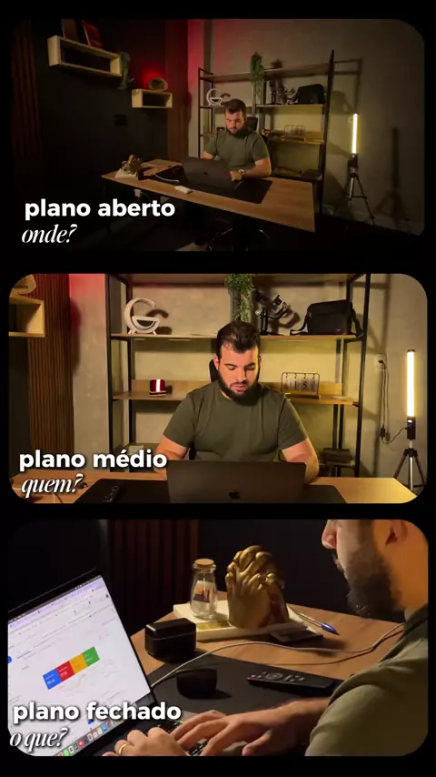 Essa é minha visão quando vou gravar algum conteúdo pra mim ou clientes. Explorar ângulos trás algumas mensagens inconscientes pra quem assiste. Dinamicidade é a chave pra reter. Ângulo aberto, contextualizo ambiente, mostra onde está o assunto. Ângulo médio, foco no assunto e no que ele está fazendo, o que está acontecendo. Ângulo fechado, mostro detalhes ou alguma expressão de emoções que estão acontecendo. O que achou? Comenta aí!