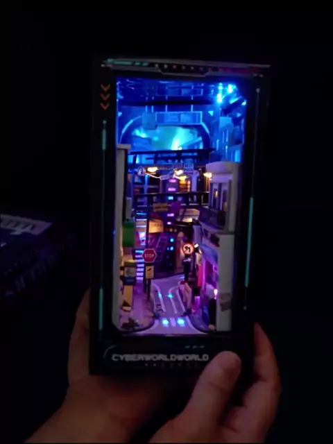 Bookend De Madeira Para Adultos, DIY Book Nook, Inserir Kits De Construção Em Miniatura, Cyberpunk World Bookshelf Assembly, Presentes De Aniversário Confira: https://s.click.aliexpress.com/e/_DljayQf #ofertas #promo #Aliexpress #miniaturas #brinquedos