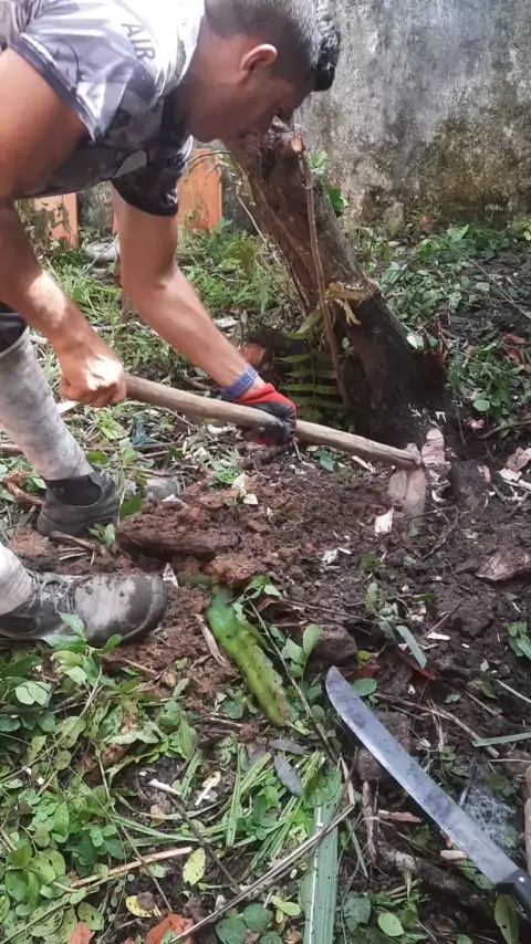 Arrancando um pé de aroeira que a Raiz tava danificando o muro do vizinho.
