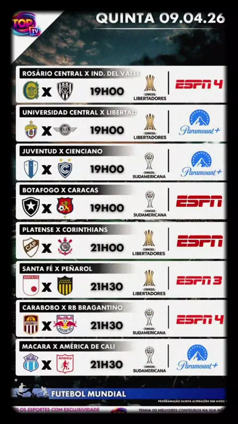 📺 Jogos de hoje 📲 Salva para acompanhar! #agenda #jogo #libertadores #copa #brasil