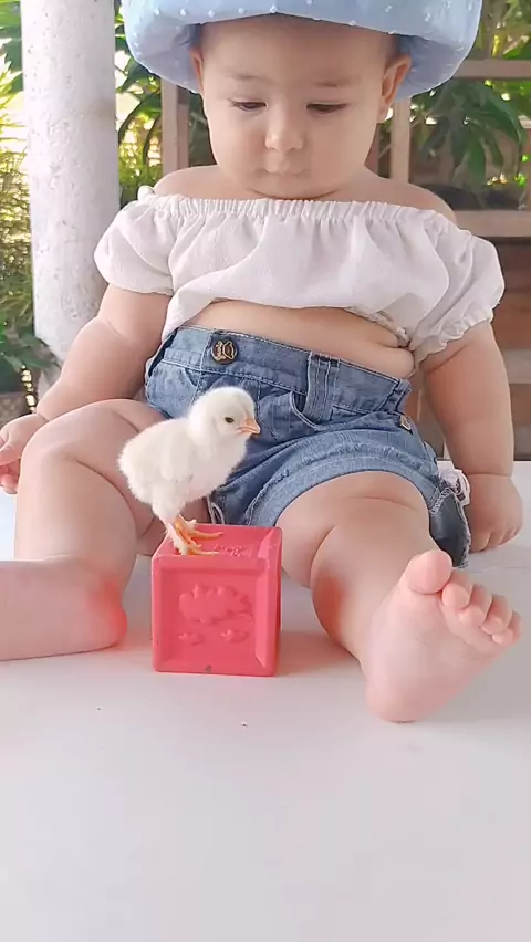 Liz e o pintinho sessão de fotos 🥰📸📷 #sejacriador #bebesfofos #kwai #Menina #princesa