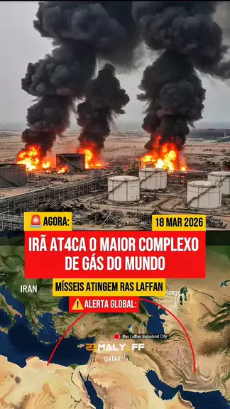 m!sse!s iranianos at!ng!ram a QatarEnergy, na cidade industrial Ras Laffan, a principal infraestrutura para a produção de gás natural liquefeito que atende ao maior terminal de gás do mundo.