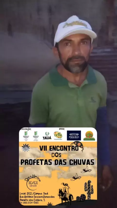 Dia 10 de janeiro vai ser realizado no IFCE de Tauá o encontro dos profetas da chuva do sertão dos inhamuns/ceará O profeta Neto da fazenda balsa/Arneiroz-ce confirmou a presença no evento!