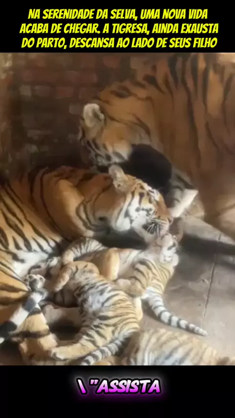 Na serenidade da selva, uma nova vida acaba de chegar. A tigresa, ainda exausta do parto, descansa ao lado de seus filhotes recém-nascidos. Ao seu lado, o tigre, como um verdadeiro pai e companheiro #viraliza #foryou #ia #vidaanimal