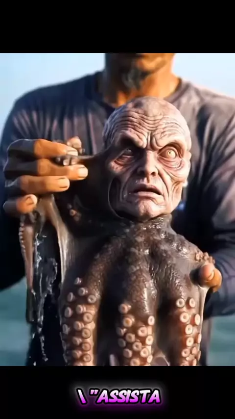 Em meio à névoa da manhã, um homem ergue algo que desafia qualquer explicação: um polvo… mas não um polvo comum. #maisviews #foryou #ia #vidaanimal