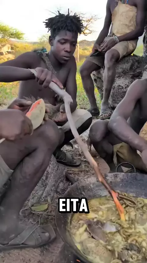 esses africanos vão devorar esse tacho enorme de vísceras e miúdos de jacaré #educação #NarraStars #informaçao #culturas #tribosafricanas