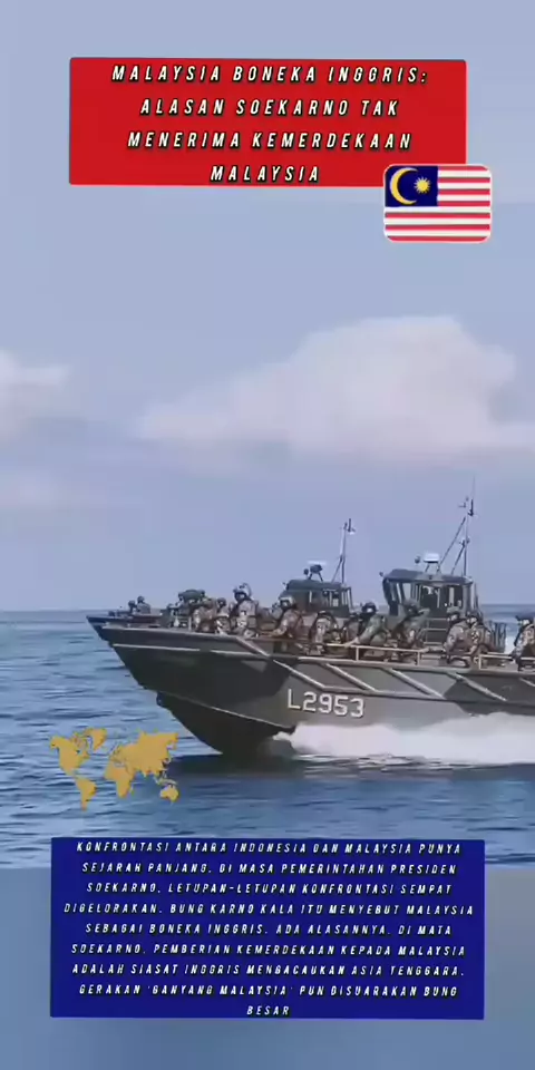 Malaysia Boneka Inggris: Alasan Soekarno Tak Menerima Kemerdekaan Malaysia Konfrontasi antara Indonesia dan Malaysia punya sejarah panjang. Di masa pemerintahan Presiden Soekarno, letupan-letupan konfrontasi sempat digelorakan. Bung Karno kala itu menyebut Malaysia sebagai boneka Inggris. Ada alasannya. Di mata Soekarno, pemberian kemerdekaan kepada Malaysia adalah siasat Inggris mengacaukan Asia Tenggara. Gerakan ‘Ganyang Malaysia’ pun disuarakan Bung Besar #malaysia #indonesia #trending #