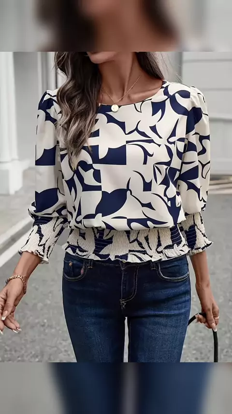 Blusa Feminina Elegante estampa geométrica e babado na barra com 44% desconto veja em: https://temu.to/k/uon6gk5lhtn #BLUSA #feminina #babado #elegantes
