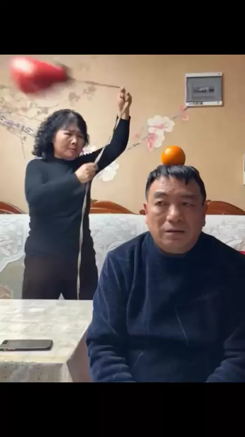 Treino de boxe em casa deu ruim 😂🥊🍊 Ela mira na laranja na cabeça do marido… e erra feio! 🤣 #viral #humor #engraçado #meme #casal