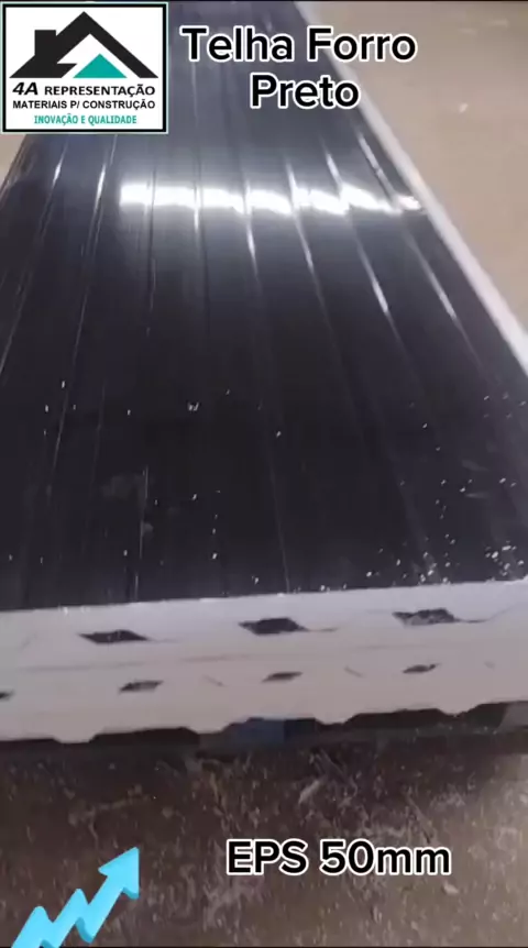 Telha Forro Amadeirado na cor Preta EPS 50mm. Temos a opção branca também ou amadeirada. Mas essa é divina para quem curte. #telhaforro #telhado #telhagalvalume #cobertura