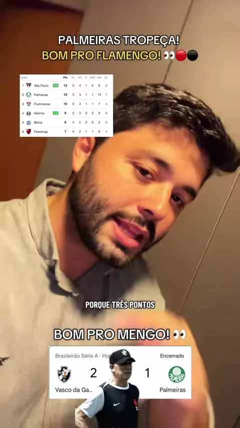 PALMEIRAS TROPEÇA! Bom pro Flamengo! 🔴⚫️👀 Vasco bate o Palmeiras e evita que eles disparem na liderança! #flamengo #palmeiras #vasco #brasileirão #futebol