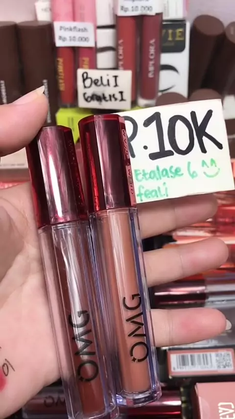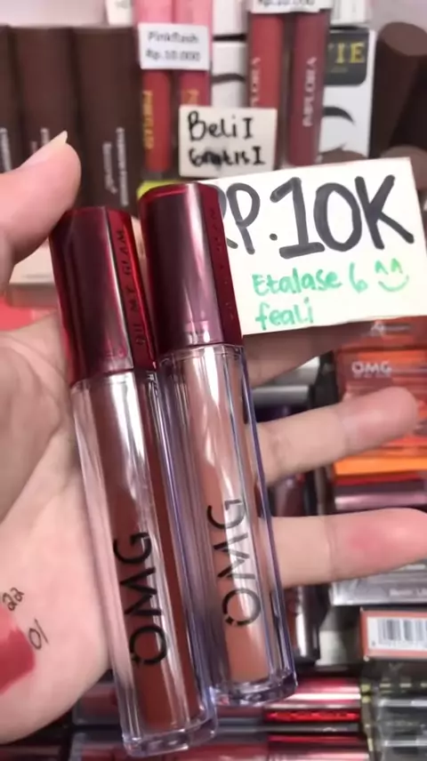 OMG Lip Cream memberikan hasil matte tahan lama! Pilih warna satuan di etalase satu, atau langsung dapat dua warna di etalase dua!