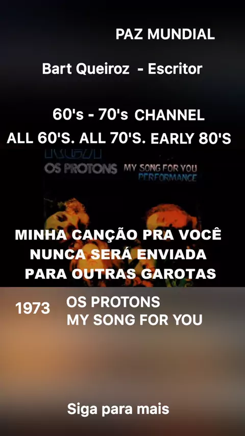 Divulgação, resgate e pesquisa de músicas dos anos 60 e 70 do século vinte. Bart Queiroz - Escritor / Livros de terror, suspense e HOT = Publicados na Amazon loja Kindle. Dê uma conferida lá!