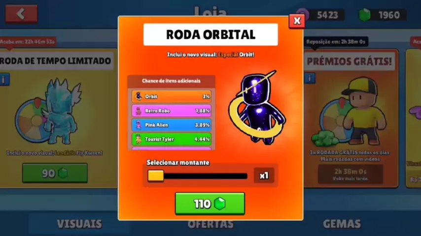 GANHEI A ESPECIAL NA ROLETA ORBITAL STUMBLE GUYS