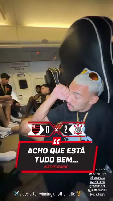 ACHO QUE ESTÁ TUDO BEM' - Através dos stories do Instagram, Memphis Depay postou um vídeo da comemoração do Corinthians ainda no avião voltando de Brasília e o Matheuzinho soltou essa aí...