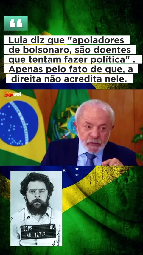Segundo o "presidente" Lula, os apoiadores da direita, apoiadores do Bolsonaro, sĂŁo pessoas doentes que tentam fazer polĂ­tica! VocĂȘ concorda com o Lula? #viral #News #noticias #brasil