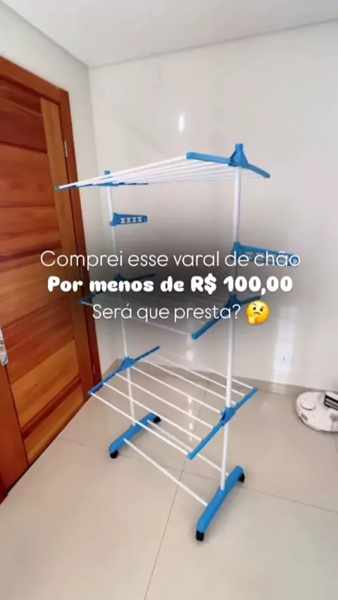 Comprei esse varal de chão por menos de R$ 100,00 na shopee! #achadinhos #varaldechao #achadosdashopee #lavanderia #varalarticulado