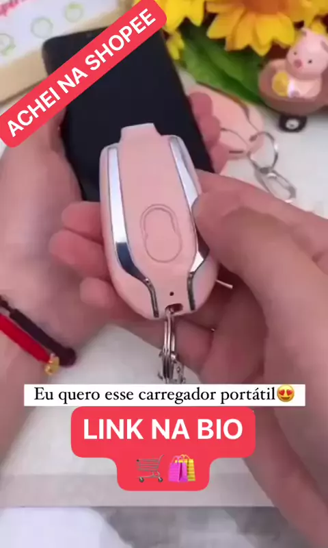 Carregador De Chaveiro Portátil | 1500mAh Ultra-Compacto Mini Pacote De Bateria Carregamento Rápido ✅🛒LINK NA BIO ✅🛒 #chaveiro #NOVIDADE #Shopeee #acheinashopee🧡