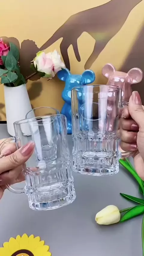 [4 poser] copo de vinho de cerveja de grande capacidade com alça de vidro doméstico chumbo de vidro de rascunho transparente - copo livre para beber água