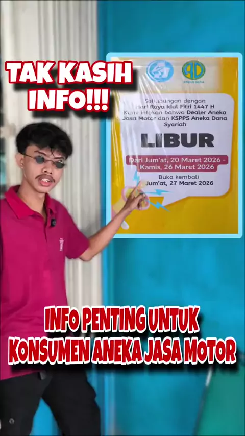 Sedikit info untuk dealer #anekajasamotor mulai tanggal 20-26 Maret 2026 Libur sementara, Jumpa lagi tanggal 27 Maret 2026 πŸ‘‹ Minal adizin wal Faidzin, Mohon maaf lahir dan batin πŸ˜‡πŸ™