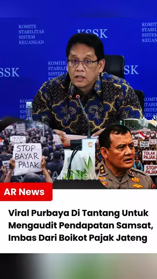 Viral Purbaya di Tantang untuk Mengaudit pendapatan Samsat, imbas dari boikot pajak jateng Menarik nih,  Hal ini berawal dari viralnya kasus boikot pajak Warga jateng,  Dikarenakan pajak mengalami kenaikan yang cukup signifikan,  Dan rakyat tidak merasakan hasil yang nyata dari pajak ini.  hal ini yang menjadi penyebab utama kasus boikot ini terjadi. Bahkan, banyak netizen yang menanyakan, kemana hasil pajak Jateng ini?  Seharusnya pajak samsat ini menjadi pendapatan daerah  yang bisa