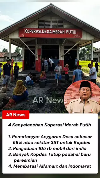 4 Keanehan Tentang Koperasi Merah Putih,  1. Pemangkasan dana desa yang gede banget Hal ini yang membuat kepala desa demo ramai-ramai karena anggaran desa 2026 dipotong sebesar 35 triliun dan dialihkan untuk program merah putih ini 2. Import pickup dari india Baru baru ini pemerintah Berencana mengimport 105 rb kendaraan pickup dari india,  jika dirupiahkan sekitar 25 triliun,  padahal industri otomotif di Indonesia sudah lumayan,  tentu saja hal ini memancing kritikan netizen  "indi