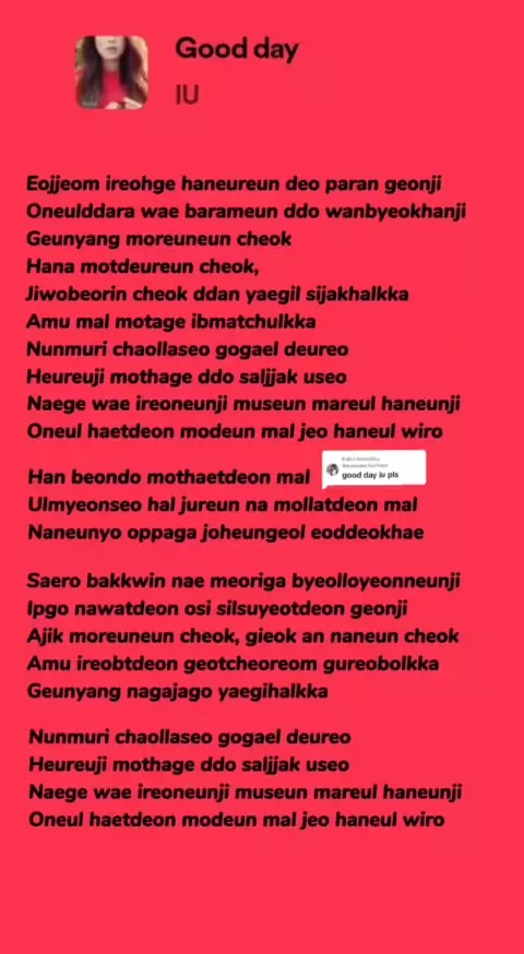 Membalas @thestealertheboyz full lyrics Good Day - IU#iu#goodday#gooddayiu#kpop#kpop#kpopsongs#liriklagu#lyrics#