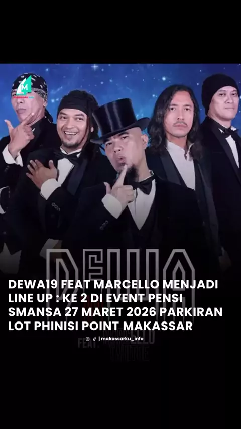 HERE THEY ARE, THE MOST WANTED! ⭐️ Yang selama ini dicari, akhirnya muncul juga. Our second GUEST STAR @DEWA19 ♥️🪽 Dengan lagu-lagu timeless dan penuh nostalgia yang pernah menemani banyak cerita, kini hadir kembali di panggung PENSI SMANSA 2026 🎶 Ready to sing along and relive the memories? #PensiSmansa2026 #TheCountlessStories #Konsermakassar@pensi.smansa2026