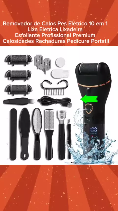 Removedor de Calos Pes Elétrico 10 em 1 Lixa Eletrica Lixadeira Esfoliante Profissional Premium Calosidades Rachaduras Pedicure Portatil #viraliza #maisviews #produtos #kwaishop #ecommerce
