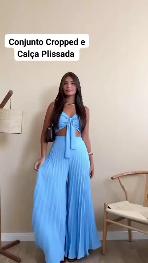 Conjunto Cropped e Calça Plissada #conjunto #lookelegante #tendencia #Cropped #calcaplissada
