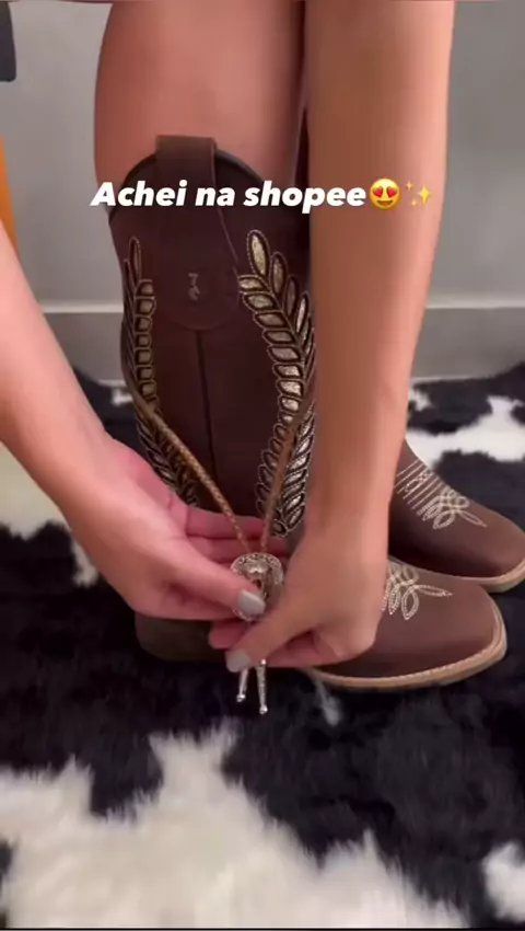 Bota Feminina PRONTA ENTREGA Cano Longo Texana Country em Couro Café Marrom com Gliter com Zíper#BotaFeminina #BotaCountry #BotaTexana #viral