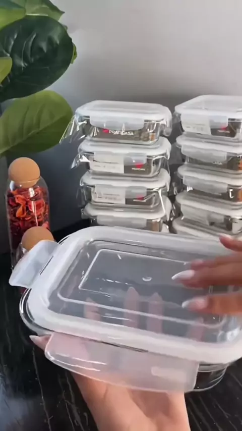 Kit 10 Pote de Vidro Hermético Retangular 4 Travas Marmita Fit Microondas Mantimentos #kit #pote #vidro #hermetico #retangular