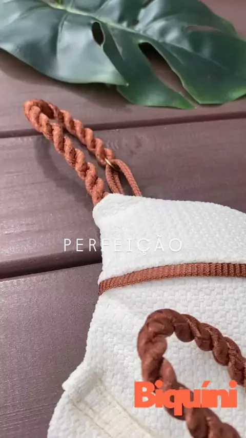 Biquíni luxo calcinha fio dental, marrom com branco, estilo para suas férias na praia 🏖️👙 #Biquini #Fiodental #Marromebranco #Ferias #Praia