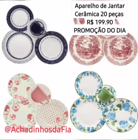 Aparelho de jantar cerâmica 20 peças jogo completo Biona . Prato fundo, prato raso, sobremesa, xicara e pires por R$199,90. https://s.shopee.com.br/9f1VvZ6mXh