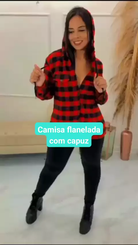 Camisa Feminina xadrez com capuz #SHOPEE #modafeminina #camisaxadrezfeminina #FestaJunina