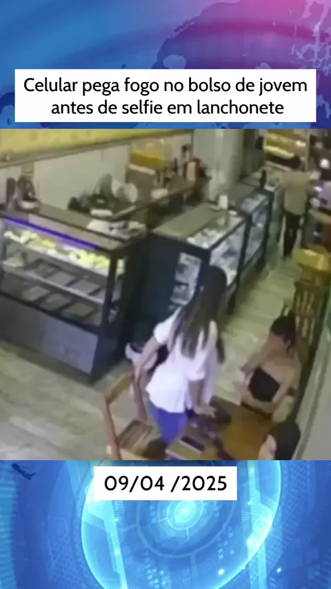 Celular pega fogo no bolso de jovem antes de selfie em lanchonete #ultimasnoticias