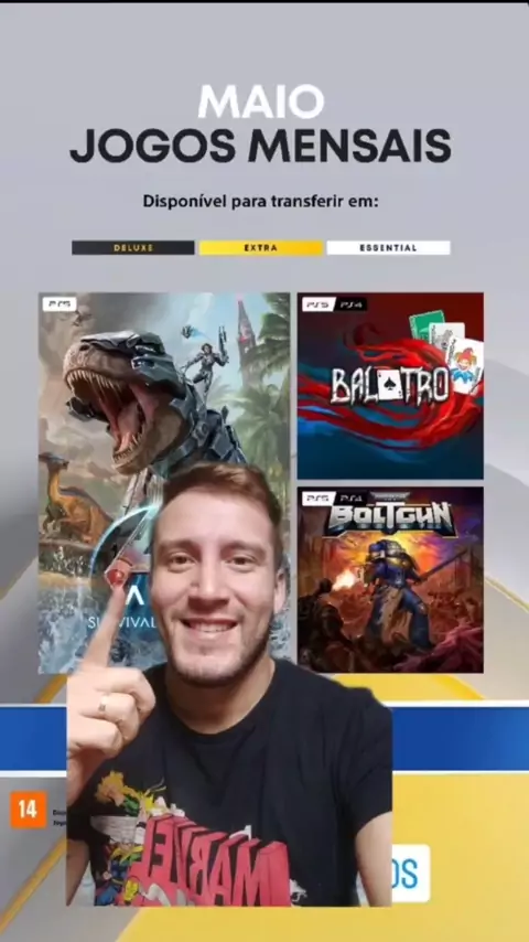 Divulgado os jogos mensais da Psplus de maio foram divulgados e teremos: Ark: Survival Ascended, Balatro, Warhammer 40,000: Boltgun. Os jogos estarão disponíveis a partir do dia 6 de maio. E se ainda não resgatou os jogos de abril, você tem até o dia 5 para salvar na sua biblioteca. Comenta aí qual jogo te deixou animado para jogar e se gostou da lista do mês de maio. #videogame #playstation #psplus #jogosmensais #ps5