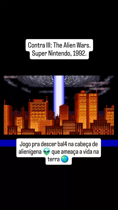 Esse aqui é bom demais, rapaziada! E bem desafiador, também. Eu nunca consegui zerá-lo na infância, zerei apenas depois de adulto. Lembro de uma tarde que joguei vários jogos na casa de um saudoso amigo de infância e zeramos este jogo. Foi um momento bastante alegre pois a gente havia comentado, ao iniciar o jogo, o quanto ele era difícil e que numca íamos muito longe nas fases, quando criança. Vale muito a pena conferir este clássico. #snes #contra3 #jogosretro #jogosantigos #gameplay