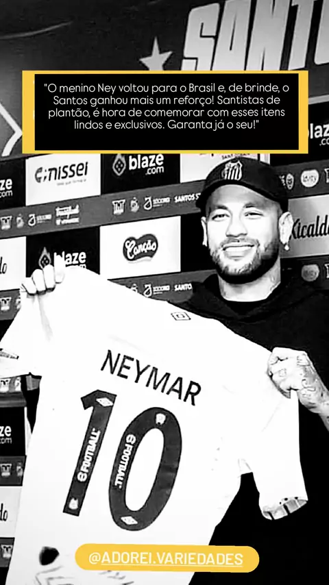 "⚽ O menino Ney voltou, e o Santos ganhou um presentão! Santistas de plantão, temos os itens perfeitos para vocês: camisas masculinas, femininas e cropped, caneca de vidro, copo térmico, xícara e moletom masculino. Garanta já o seu e vista o manto com orgulho! ✅comenta EU QUERO que lhe envio o link. #neymarvoltouparaobrasil #Supercopa2025 #voltaasaulas #bondedasoncinhas