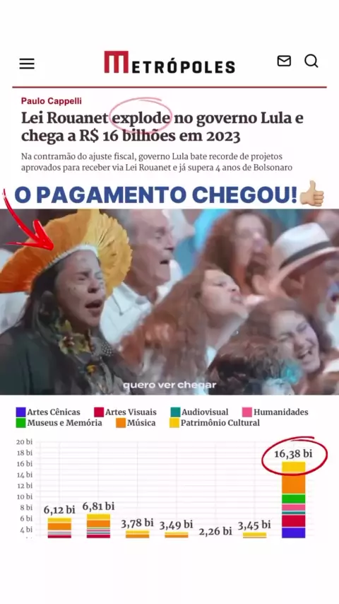 Lei Rouanet ultrapassa os 16 Bi, em 2023 esse e o pai dos pobres ou pais dos mamateiros do dinheiro público ??? #politica #ForaLula #leirouanet #BOLSONARO