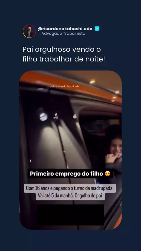 Pai orgulhoso vendo o filho trabalhando à noite. Mas será que ele conhece todos os direitos do trabalho noturno? ⚖️ O trabalho à noite exige: Adicional de 20% sobre o salário Intervalos para descanso Limites de jornada para proteção à saúde 💡 Orgulho sem proteção não vale a pena. O trabalhador tem direitos garantidos. #TrabalhoNoturno #DireitosDoTrabalhador #AdicionalNoturno