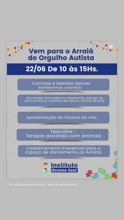 *ARRAIA DO ORGULHO AUTISTA EM NITERÓI* SÁBADO - DIA 22/06 https://www.instagram.com/p/C8DwN20xW_b/?igsh=MW5iOWFjNWI4ZnZ2Ng==