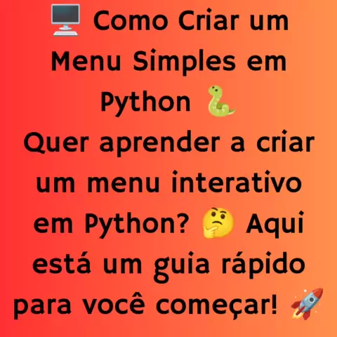: 🖥️ Como Criar um Menu Simples em Python 🐍 Quer aprender a criar um menu interativo em Python? 🤔 Aqui está um guia rápido para você começar! 🚀 . 💡 Dica: Use loops e condicionais para tornar seu menu mais dinâmico e interativo! 🔗 Código completo no GitHub: [link_do_repositorio] #Python #Programação #Desenvolvimento #Código #MenuInterativo Espero que goste! Se precisar de mais alguma coisa, é só avisar. 😊