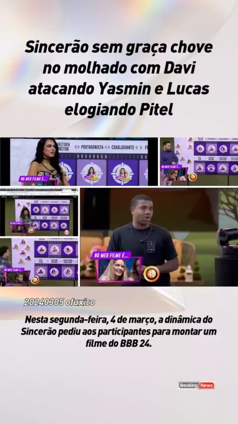 Sincerão sem graça chove no molhado com Davi atacando Yasmin e Lucas elogiando Pitel