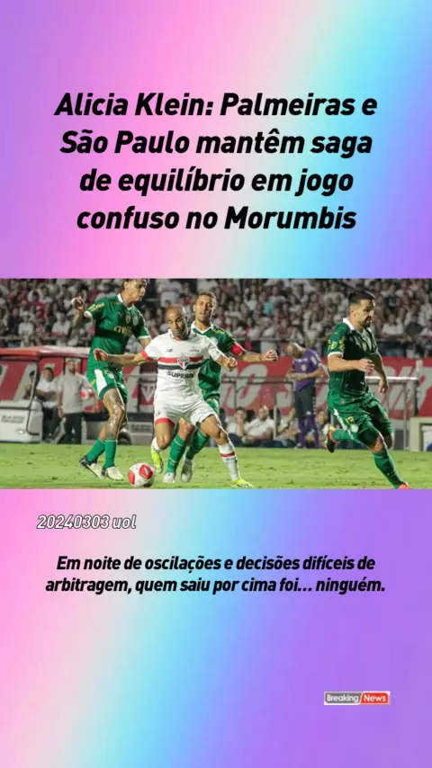 Alicia Klein: Palmeiras e São Paulo mantêm saga de equilíbrio em jogo confuso no Morumbis