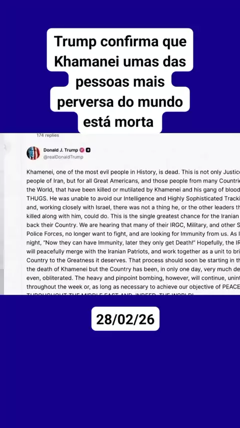 Trump confirma que Khamanei umas das pessoas mais perversa do mundo está morta. #noticias #politica