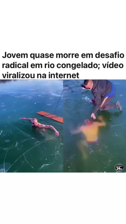 🌎Um jovem por pouco não perdeu a vida ao participar de um desafio radical em um rio completamente congelado. No vídeo, que viralizou na internet, ele mergulha sob o gelo, mas erra a saída e fica preso. Desesperados, seus amigos tentam quebrar o gelo às pressas para resgatá-lo. Felizmente, após momentos de tensão, o jovem consegue ser retirado da água. O caso gerou alerta sobre os perigos desse tipo de desafio extremo. (Vídeo: Arquivo Pessoal) (Fonte: @exclusivo24hs)