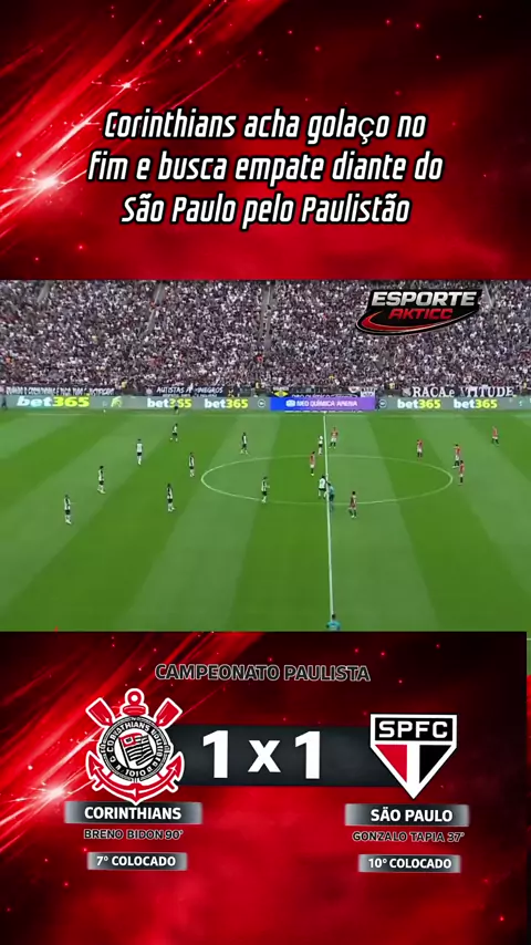 Corinthians acha golaço no fim e busca empate diante do São Paulo pelo Paulistão #Paulistão #viraliza #esportes #brasil #viral